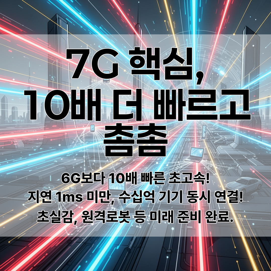 6G 대비 10배 이상 향상된 전송 속도, 1ms 미만 초저지연, 수십억대 기기 동시 연결 가능한 초연결 인프라를 특징으로 하며, 자율주행차, 원격 의료로봇, 메타버스 등 차세대 서비스에 최적화되어 있다.