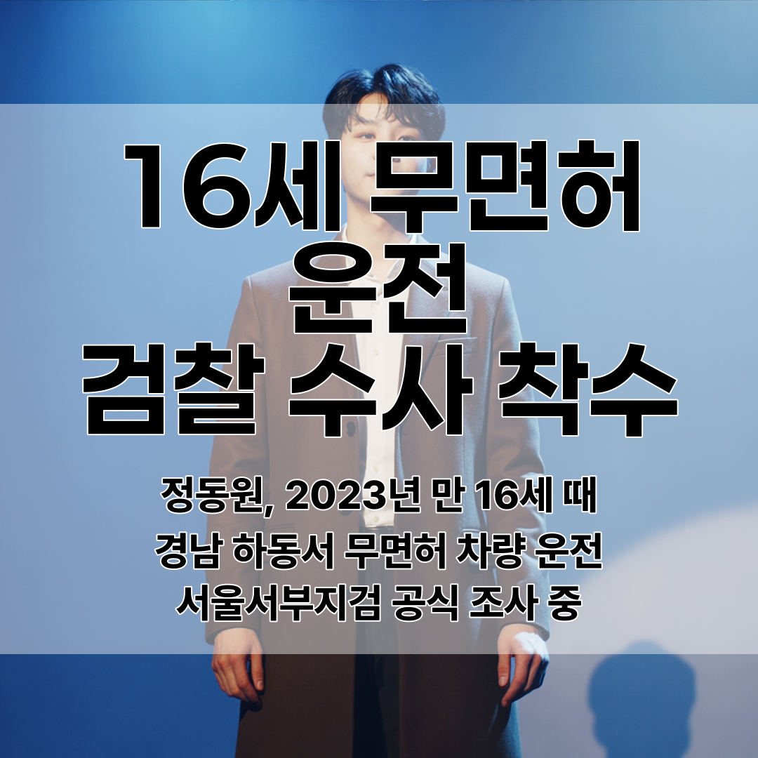 트로트 가수 정동원이 2023년 만 16세 시절 경남 하동에서 무면허로 차량을 운전한 사실이 드러나 현재 서울서부지검에서 도로교통법 위반 혐의로 조사 중이다.