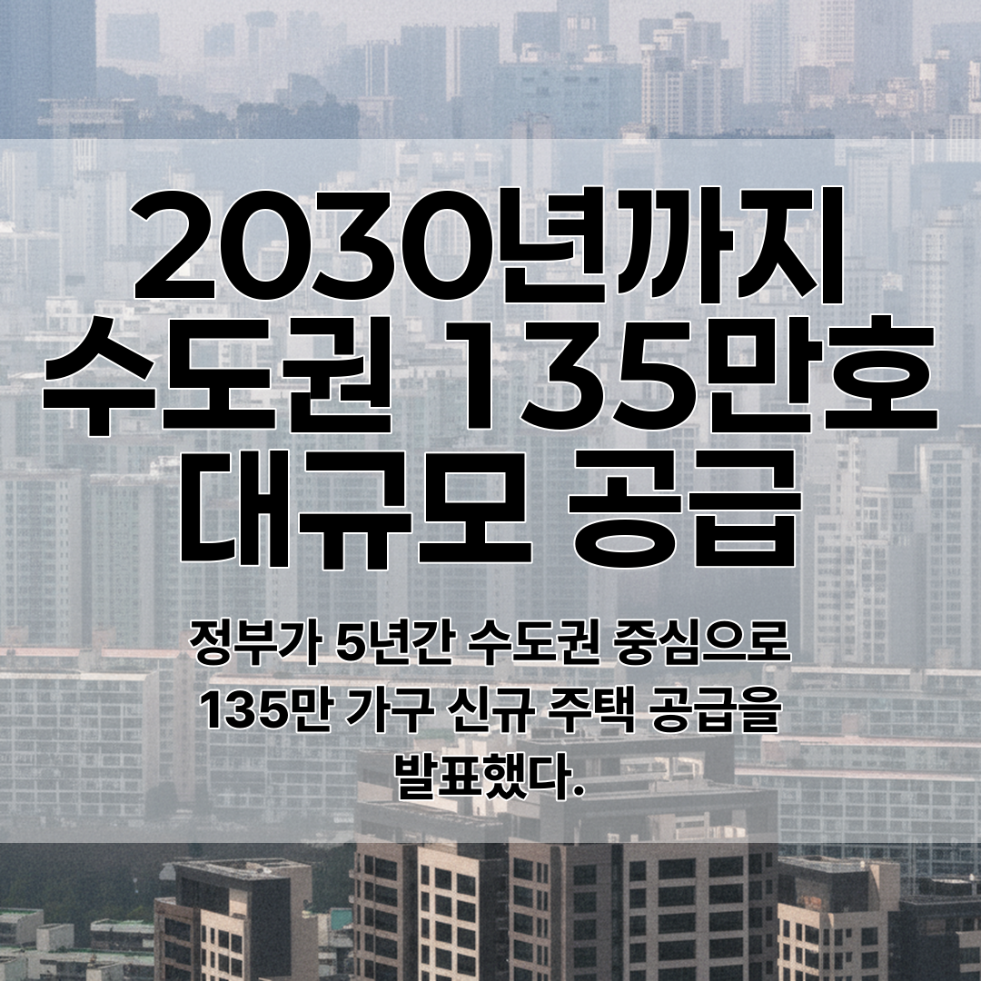 정부가 2030년까지 수도권을 중심으로 135만 가구의 신규 주택을 공급한다고 발표했으며, 이는 1기 신도시급 규모에 해당한다. LH가 직접 시행을 맡아 유휴부지 활용, 3기 신도시 개발, 비주택 용지의 주거 전환 등을 통해 공급할 예정이다.