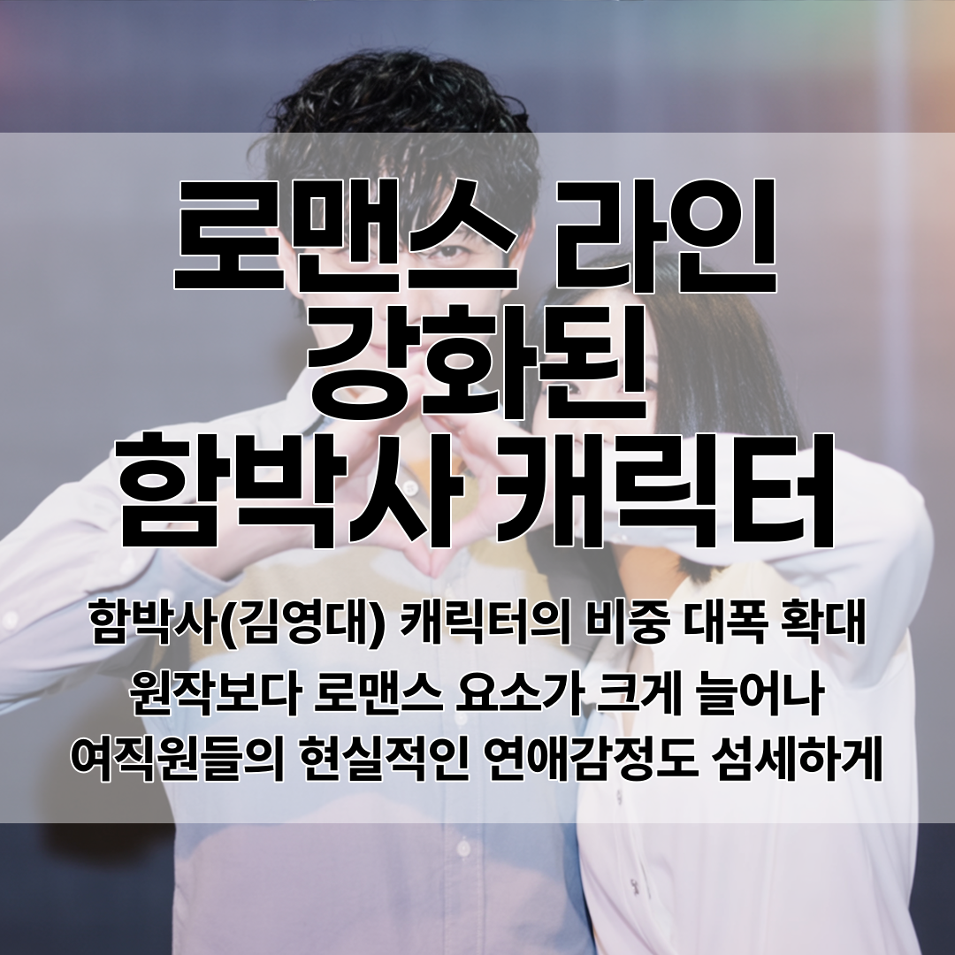 원작에 비해 함박사 캐릭터의 비중이 대폭 확대되었고, 로맨스 요소가 크게 강화되어 여성 직장인들의 현실적인 연애감정을 섬세하게 다뤘다.