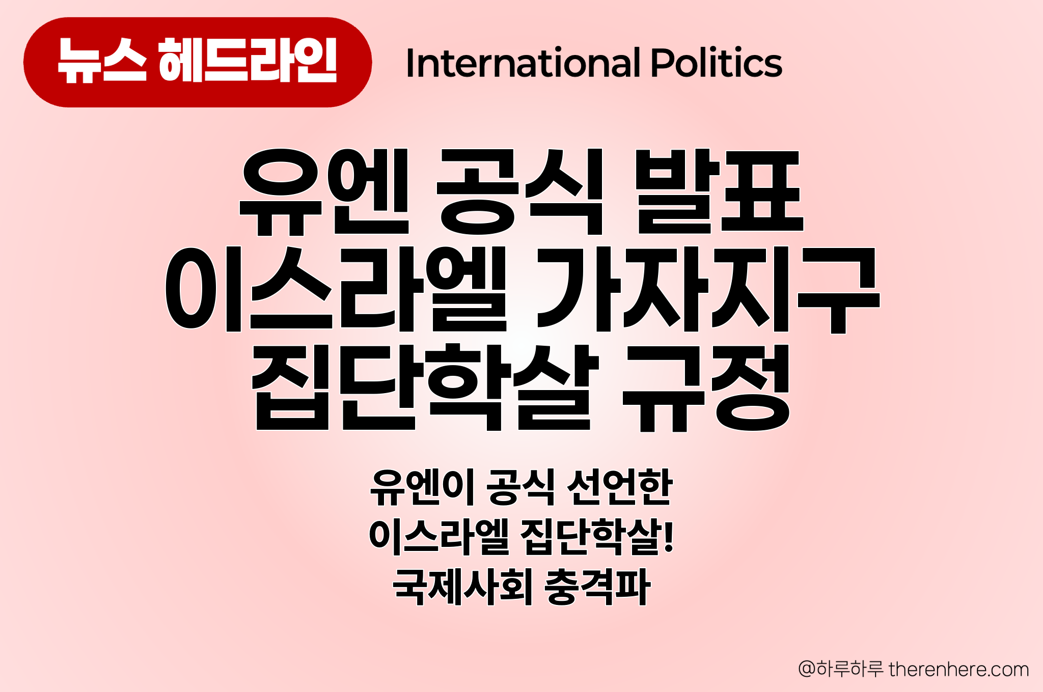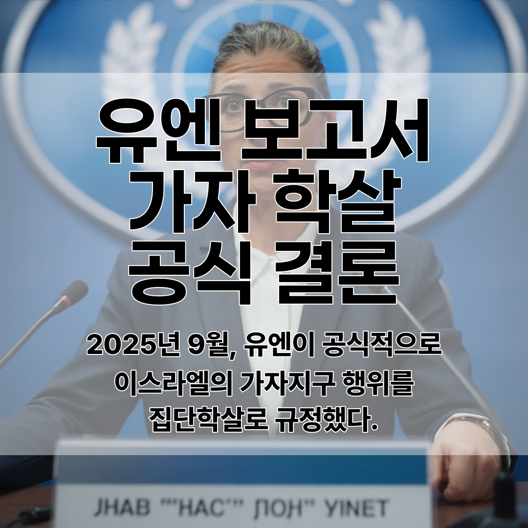 2025년 9월 16일 유엔 인권이사회 산하 독립 국제 조사위원회가 2년간의 조사를 통해 72쪽 분량의 보고서를 발표하며, 이스라엘의 2023년 10월 이후 가자지구 전쟁 행위를 국제법상 집단학살로 공식 규정했다.