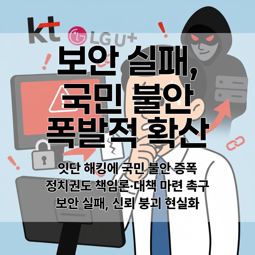 이통3사 모두 해킹 피해나 보안 사고를 겪으면서 국민의 불안과 분노가 확산되고 있으며, 반복되는 보안 실패로 인한 신뢰 붕괴가 현실화되고 있다.