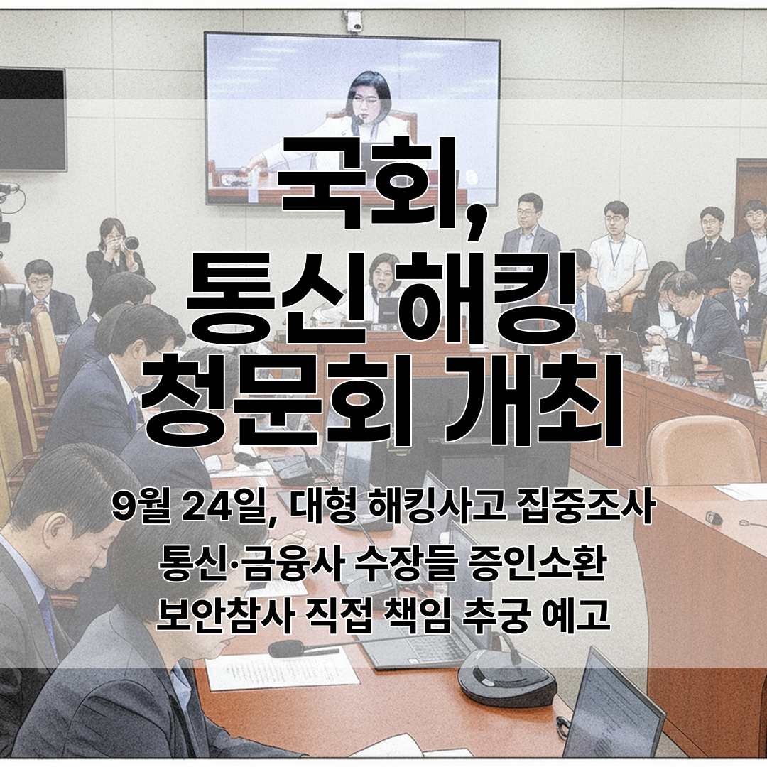 2025년 9월 24일, 국회 과학기술정보방송통신위원회에서 통신·금융사의 대규모 해킹사고에 대한 청문회가 열렸습니다.