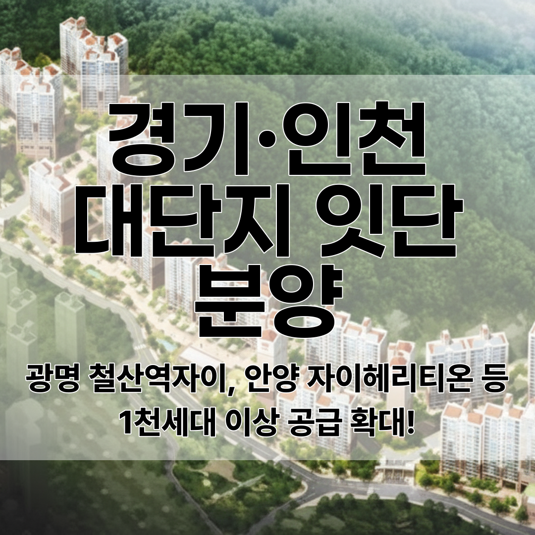 광명 철산역자이, 안양 자이헤리티온 등 1천 세대 이상 규모의 대단지 분양이 경기·인천 지역에서 진행되고 있으며, 브랜드 아파트를 중심으로 한 대규모 공급이 특징이다.
