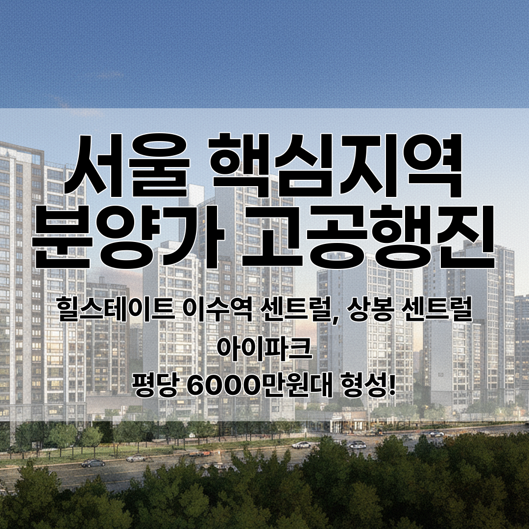 서울 동작구 힐스테이트 이수역 센트럴과 중랑구 상봉 센트럴 아이파크가 9월 중순 청약 예정이며, 분양가는 평당 6000만원에 육박하는 수준을 보이고 있다.