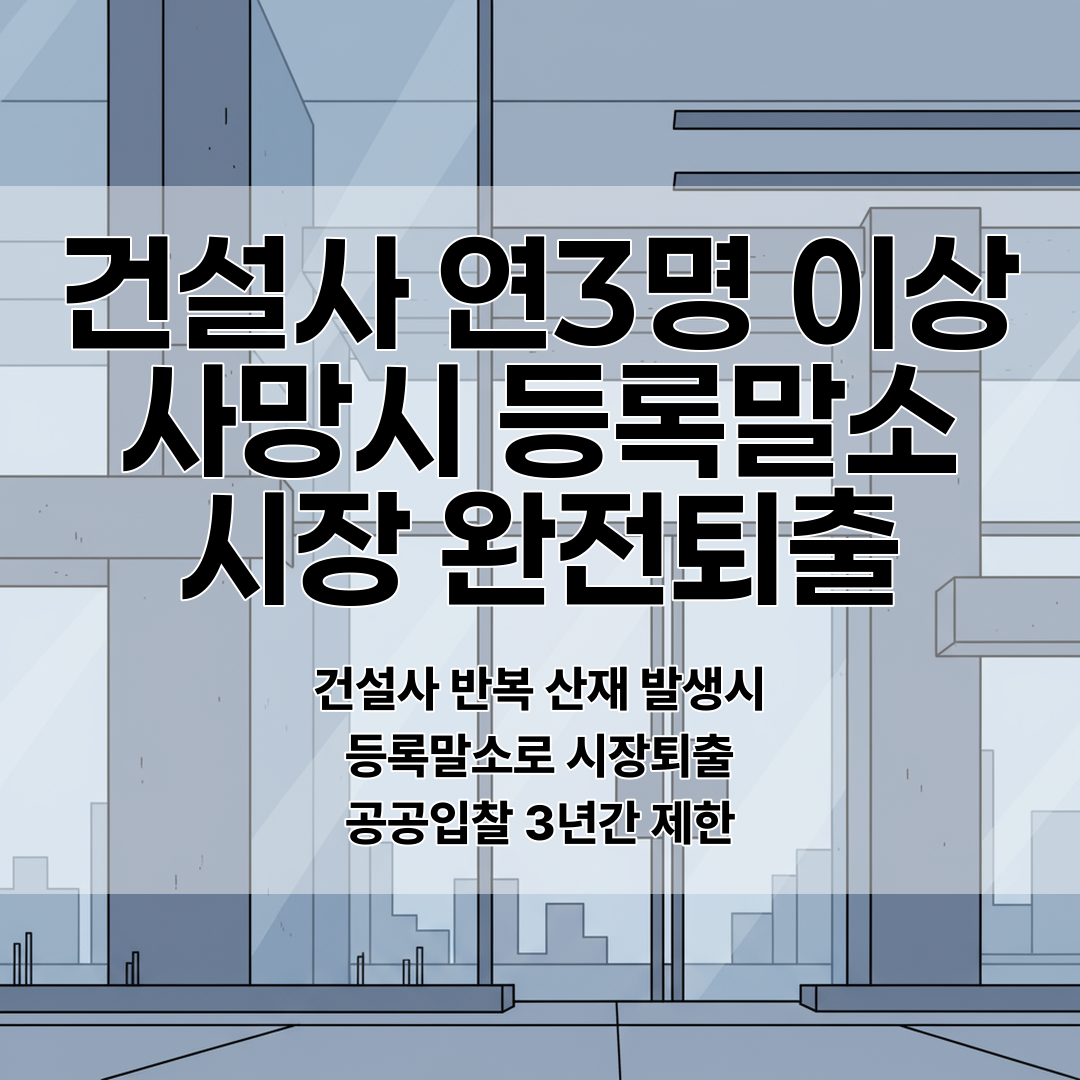 건설업계에는 더욱 강력한 처벌이 기다리고 있습니다. 연간 3명 이상 사망사고가 반복되면 건설업 등록 자체가 말소되어 시장에서 완전히 퇴출되는 거예요.