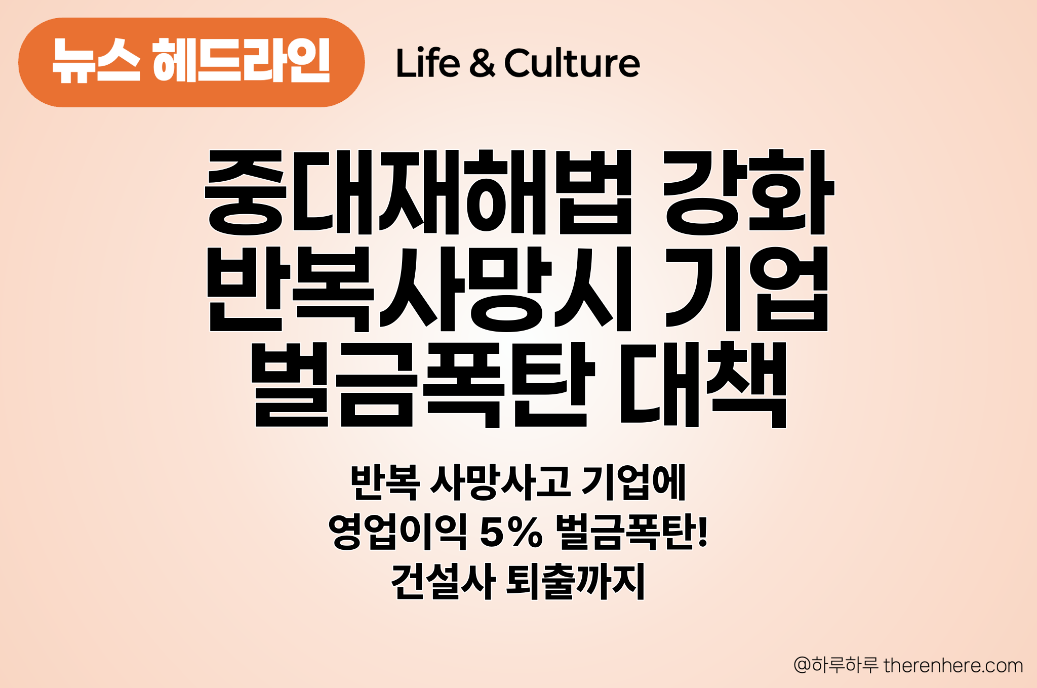 기존의 산업안전보건법 처벌 수준을 훌쩍 넘어서는 직접적인 경제적 타격으로 안전관리 부실을 예방하겠다는 정부의 강한 의지가 엿보입니다. 특히 반복적으로 산재 사망이 발생하는 기업들을 겨냥한 조치죠.