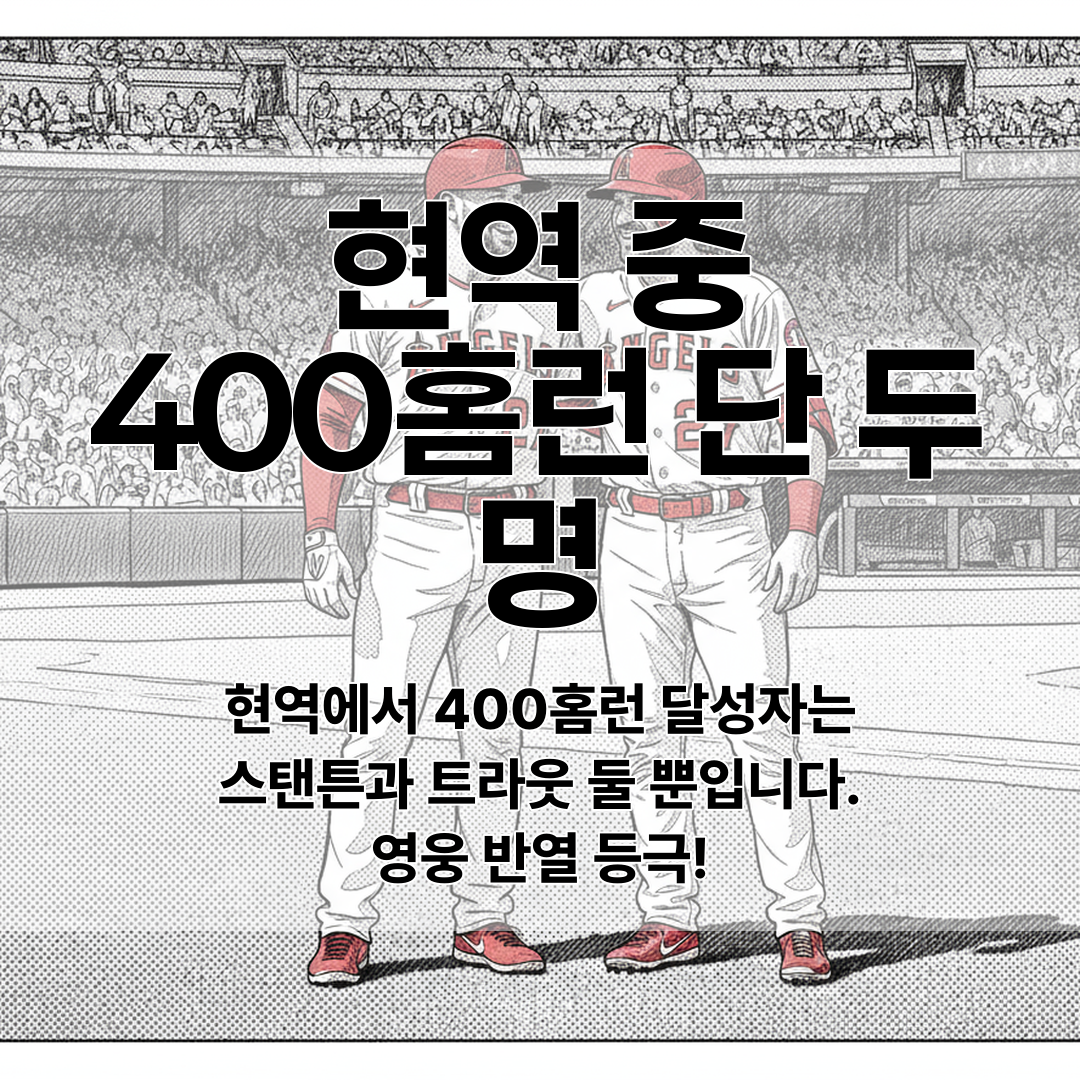 현역 메이저리그 선수 중 400홈런을 달성한 이는 단 두 명뿐이에요. 지안카를로 스탠튼(450홈런)과 마이크 트라웃이 그 주인공들이죠!