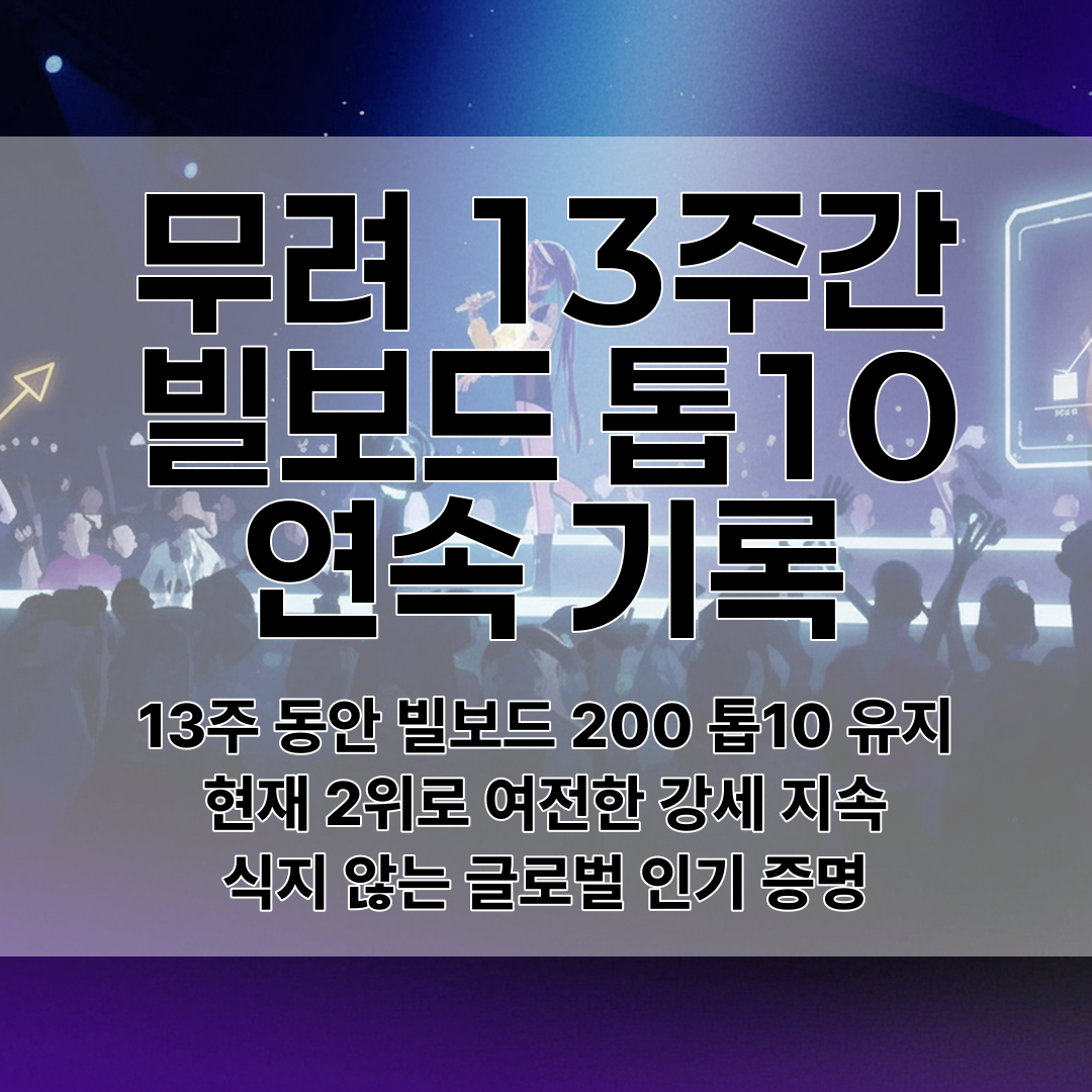 정말 놀라운 건 지속력이에요! 케이팝 데몬 헌터스 OST는 빌보드 200에 첫 진입한 후 무려 13주 연속으로 톱10 안에 머물고 있거든요. 😱