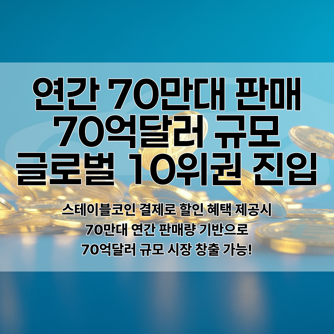 현대차의 연간 국내 판매량 70만대를 바탕으로 스테이블코인 결제 시 70억 달러 규모의 잠재 시장이 창출될 수 있으며, 글로벌 10위권 스테이블코인 발행사로 성장할 가능성이 제기되고 있다.