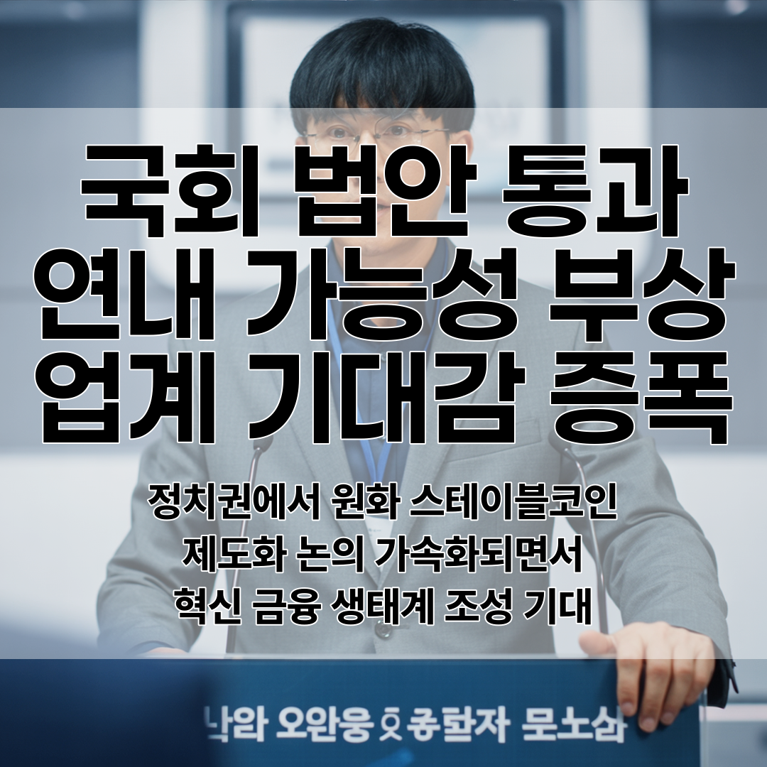 정치권에서 원화 스테이블코인 제도화 논의가 가속화되고 있으며, 국회에서 관련 법안의 연내 통과 가능성이 제기되면서 업계의 기대감이 증폭되고 있다.