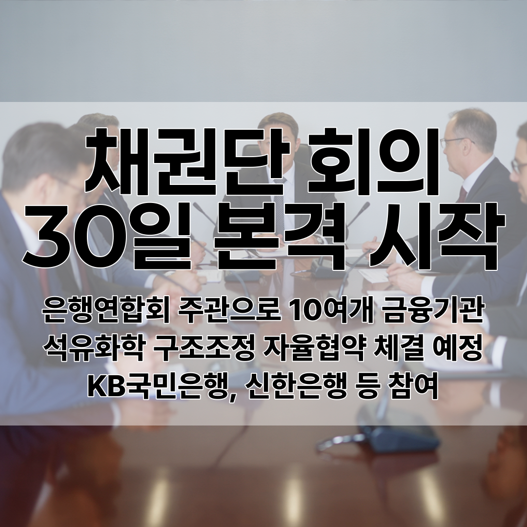 KB국민은행, 신한은행, 산업은행을 포함한 10여개 주요 금융기관이 참여하는 채권단 자율협약이 체결될 예정이에요. 이번 협약은 석유화학 업계의 유동성 위기를 해결하기 위한 핵심 방안으로 주목받고 있습니다.