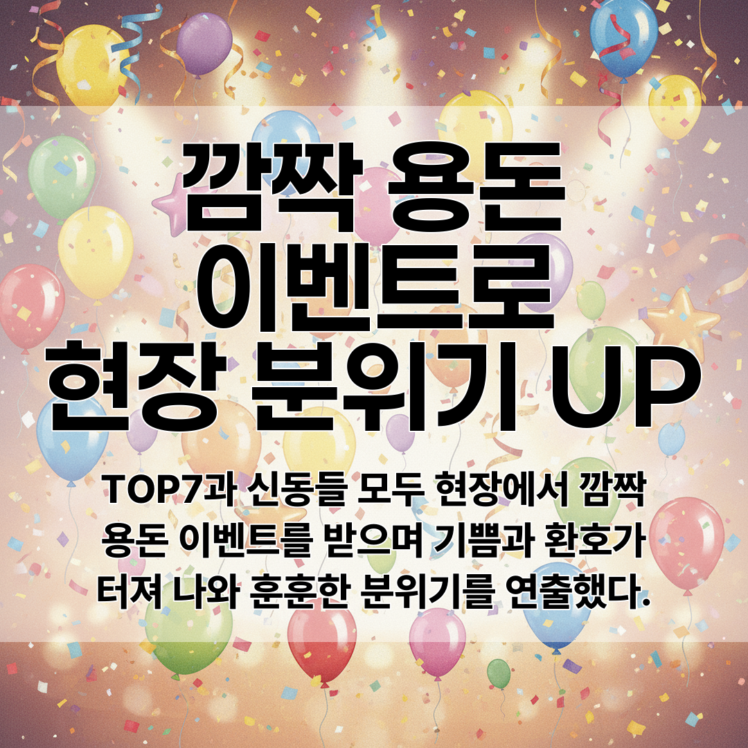 현장에서는 TOP7과 신동들에게 깜짝 용돈 이벤트가 펼쳐졌어요.