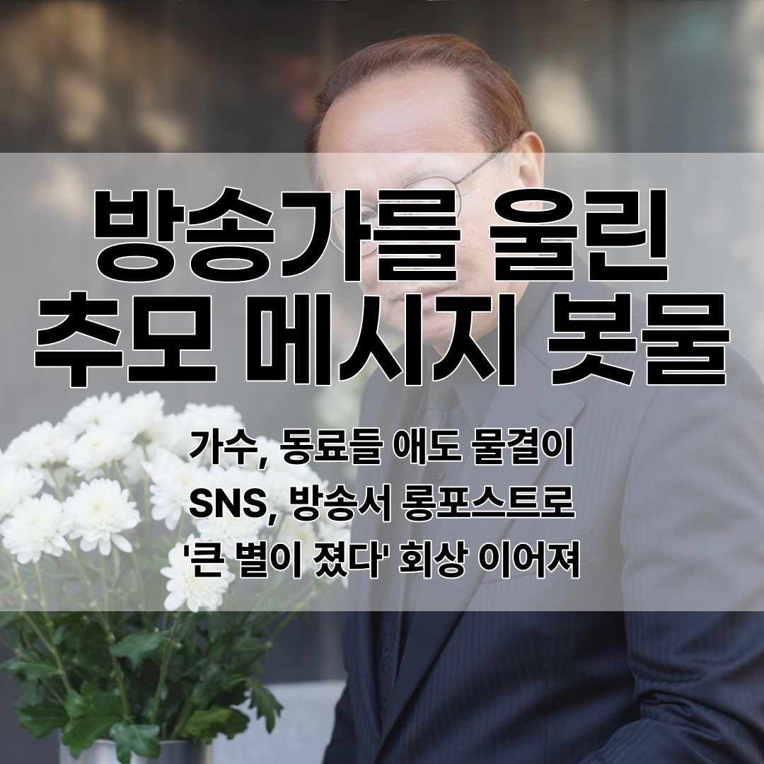 이문세 등 수많은 스타와 방송 관계자들이 지난 방송 출연 장면과 추억을 공유하며 슬픔을 전했다. 각자의 SNS에는 고인과의 소중한 추억들이 담긴 사진과 함께 진심어린 애도 메시지가 계속 올라오고 있어.