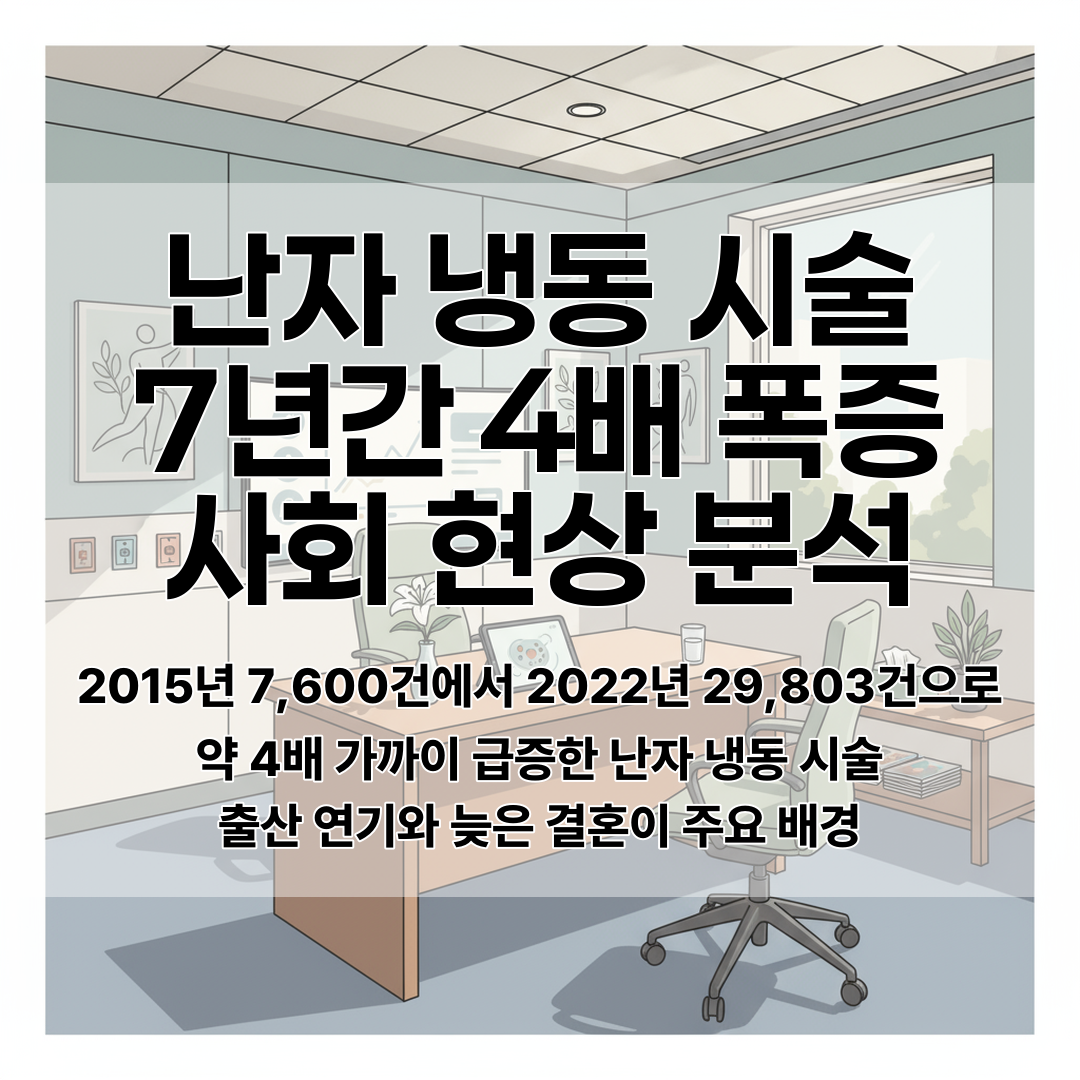 난자 냉동 시술이 폭발적으로 증가하고 있어요. 2015년 7,600건에 불과했던 시술 건수가 2022년에는 29,803건까지 치솟았습니다. 무려 4배 가까운 증가세죠!