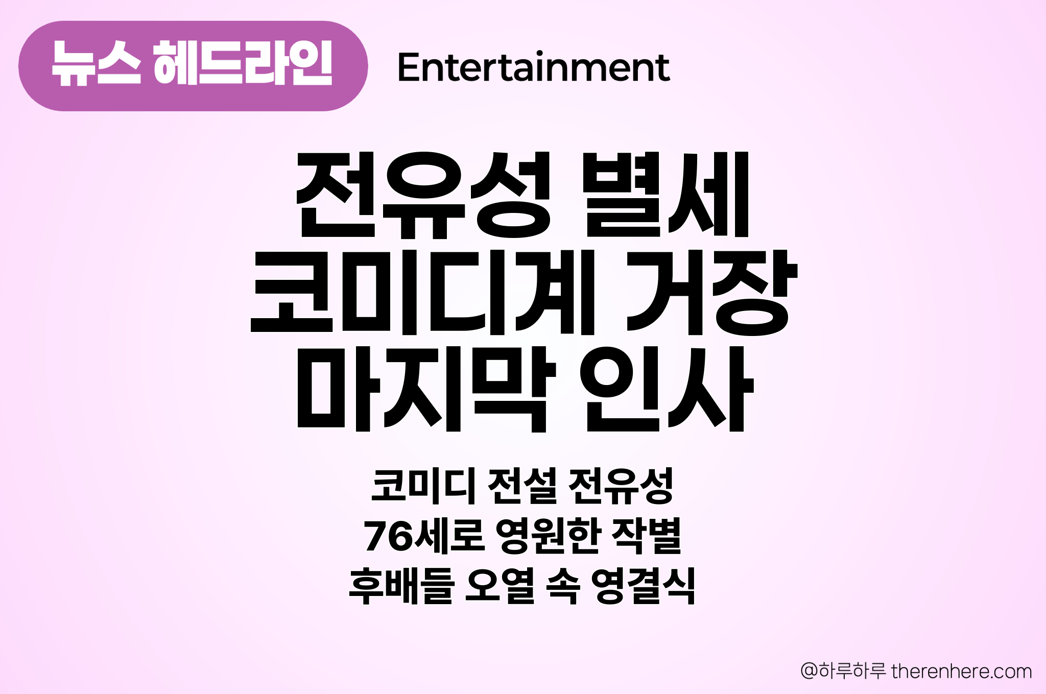 코미디계 1세대 거장 전유성이 2025년 9월 25일 76세의 나이로 폐기흉 증세 악화로 별세했으며, 연명치료를 거부하며 딸이 곁을 지키는 가운데 조용히 눈을 감았다.