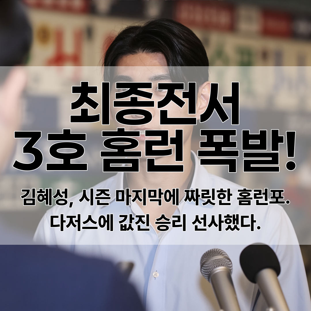 특히 이번 홈런은 김혜성에게도, 팀에게도 특별한 의미가 있었는데요. 포스트시즌을 앞둔 마지막 경기에서 터진 시원한 한 방으로 팀 분위기를 최고조로 끌어올렸거든요.