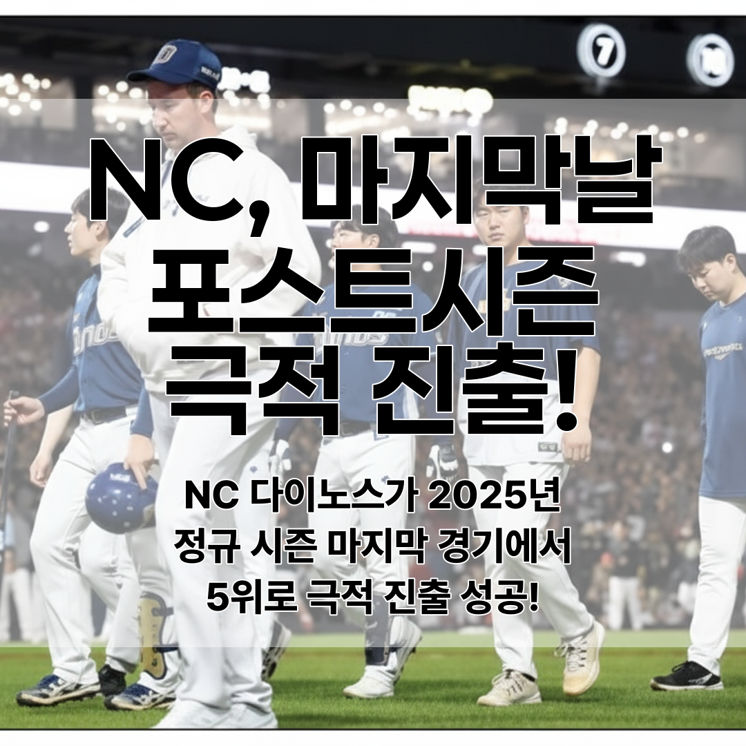 NC 다이노스가 2025년 KBO 리그 정규시즌 마지막 경기에서 5위를 확정하며 2년 만에 포스트시즌에 진출했다. 시즌 전반기 하위권에서 후반기 놀라운 반등으로 극적인 역전을 이뤄냈다.