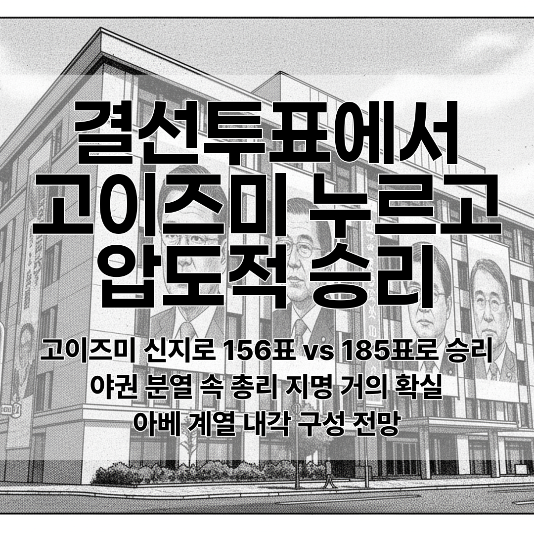 결과는 다카이치 185표, 고이즈미 156표로 29표 차이의 승리였습니다. 생각보다 큰 격차는 아니었지만, 결과적으로는 명확한 승부가 났죠.