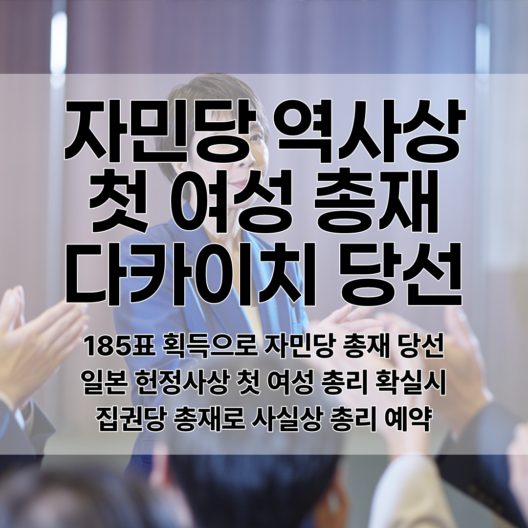 2025년 10월 4일, 다카이치 사나에가 자민당 총재 선거에서 185표를 획득해 당선됐습니다. 🎉