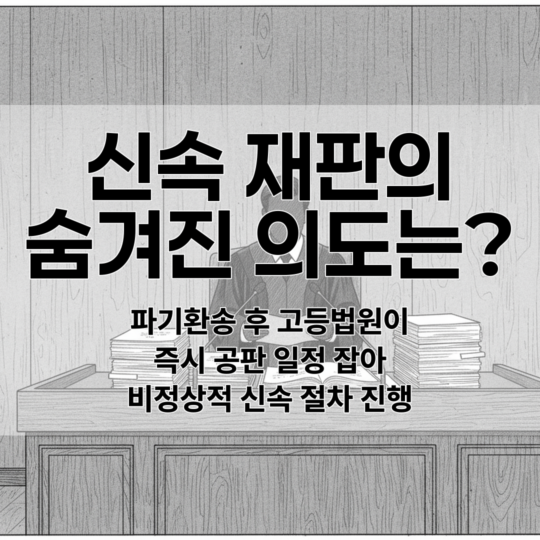 대법원이 파기환송을 결정한 직후, 고등법원이 즉시 공판 일정을 잡아 비정상적으로 빠른 절차로 진행된 점이 큰 논란이 되고 있어요.