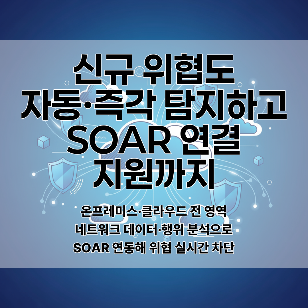온프레미스, 가상 환경, 클라우드 등 모든 영역에서 네트워크 패킷, 시스템, 사용자 행위 데이터를 수집해 AI로 연관 분석한다. 허니팟 센서로 공격 경로를 파악하고 SOAR 연동을 통해 방화벽과 EDR을 실시간 차단하며, 제로데이, APT, 랜섬웨어 등 신규 위협을 즉시 탐지한다.