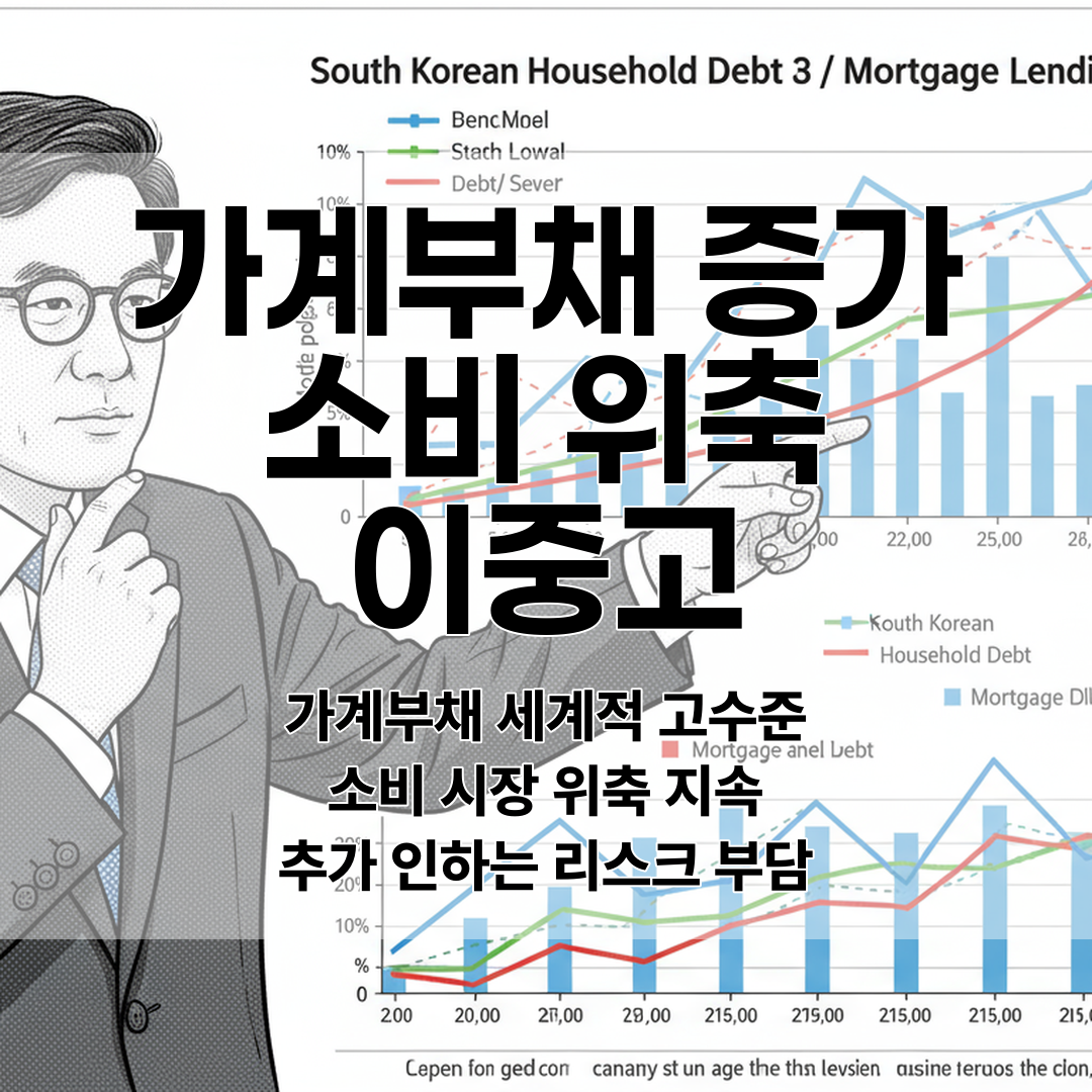 한국의 가계부채가 세계적으로 높은 수준에 도달했으며, 추가 금리 인하 시 자금이 부동산 등 자산시장으로 몰릴 위험이 있다. 소비 위축이 지속되고 있어 대출 시장과 소비 시장 모두 아직 안정기에 접어들지 않은 상황이다.