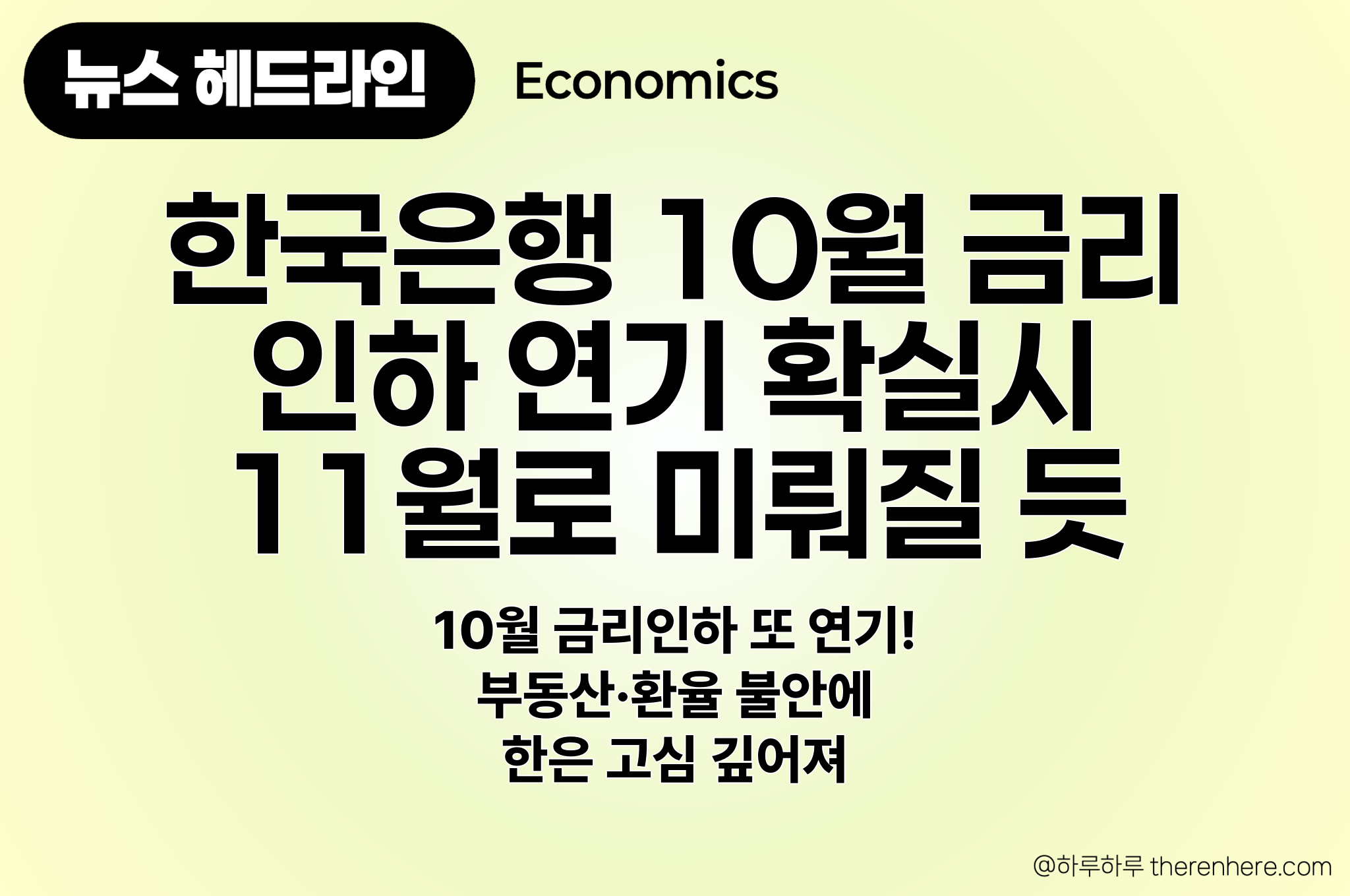 10월 금리인하 또 연기! 부동산·환율 불안에 한은 고심 깊어져