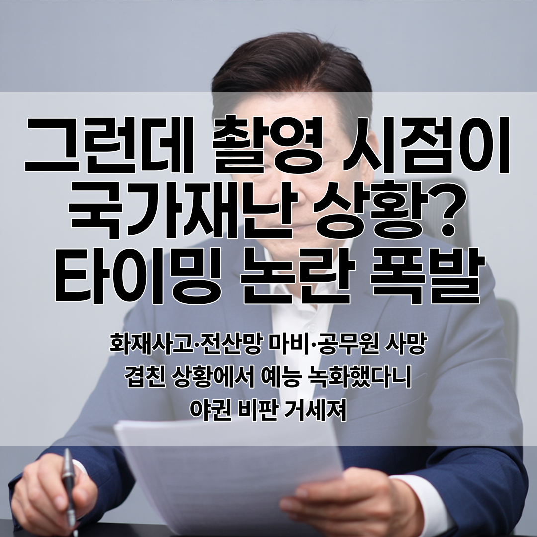 국민의힘을 비롯한 야당 의원들은 "국민이 고통받는 상황에서 예능 출연이라니, 대국민 책임감이 부족하다"며 강하게 비판했어요. 대통령실은 논란이 커지자 방송을 하루 연기하며 파장을 최소화하려 했지만, 이미 정치적 논쟁에 불이 붙은 상태였습니다.