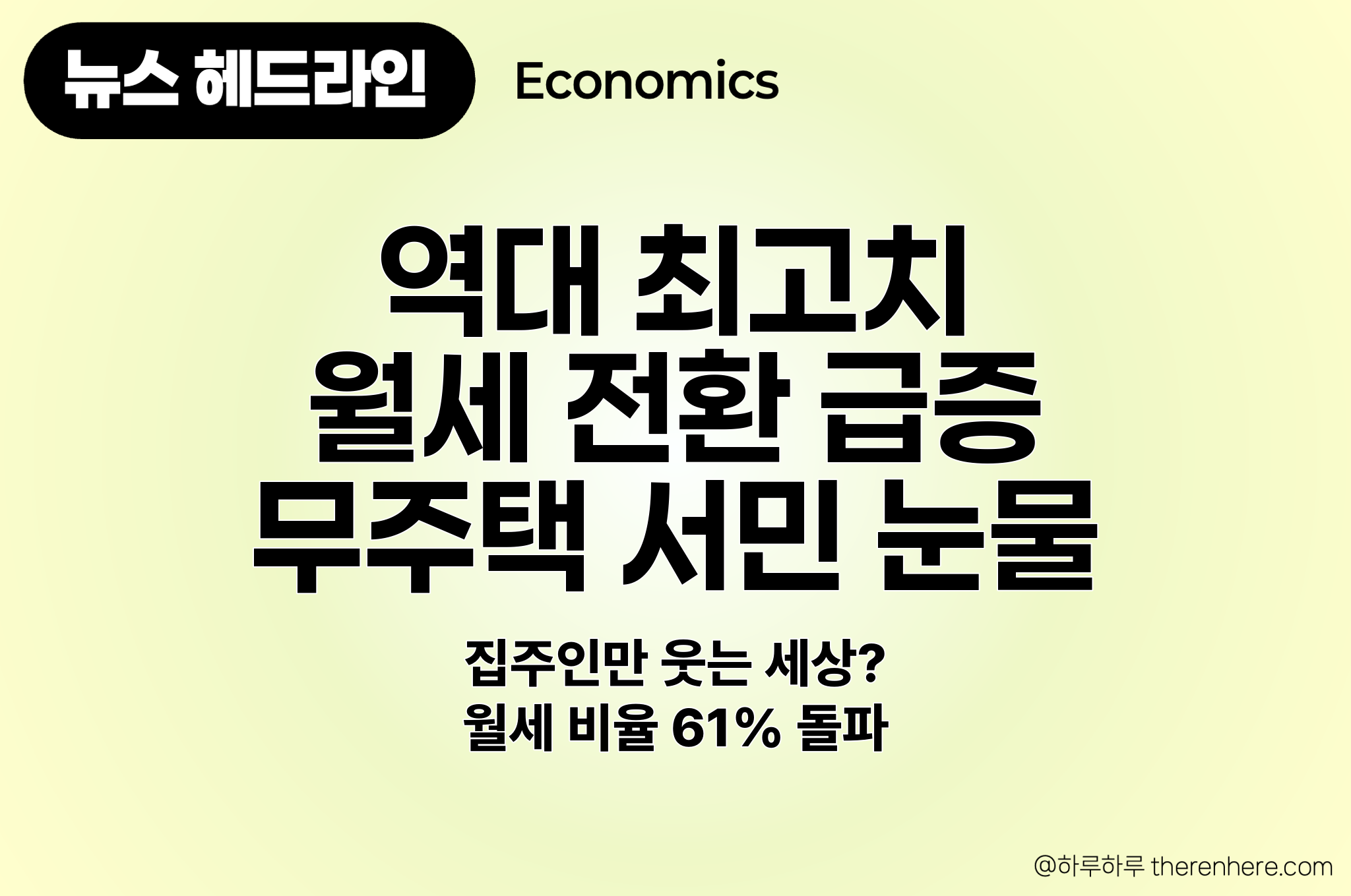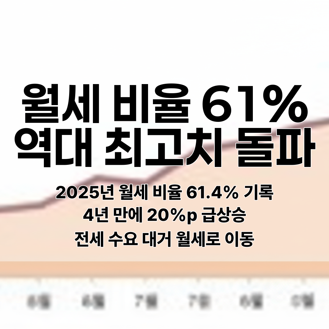 2025년 1-2월 월세 신규 거래 비율이 61.4%를 기록하여 사상 처음으로 60%를 넘어섰으며, 2021년 대비 20%p 이상 급증했다. 전세 사기 불안과 대출난을 피해 젊은 세입자들이 월세 시장으로 이동하고 있다.