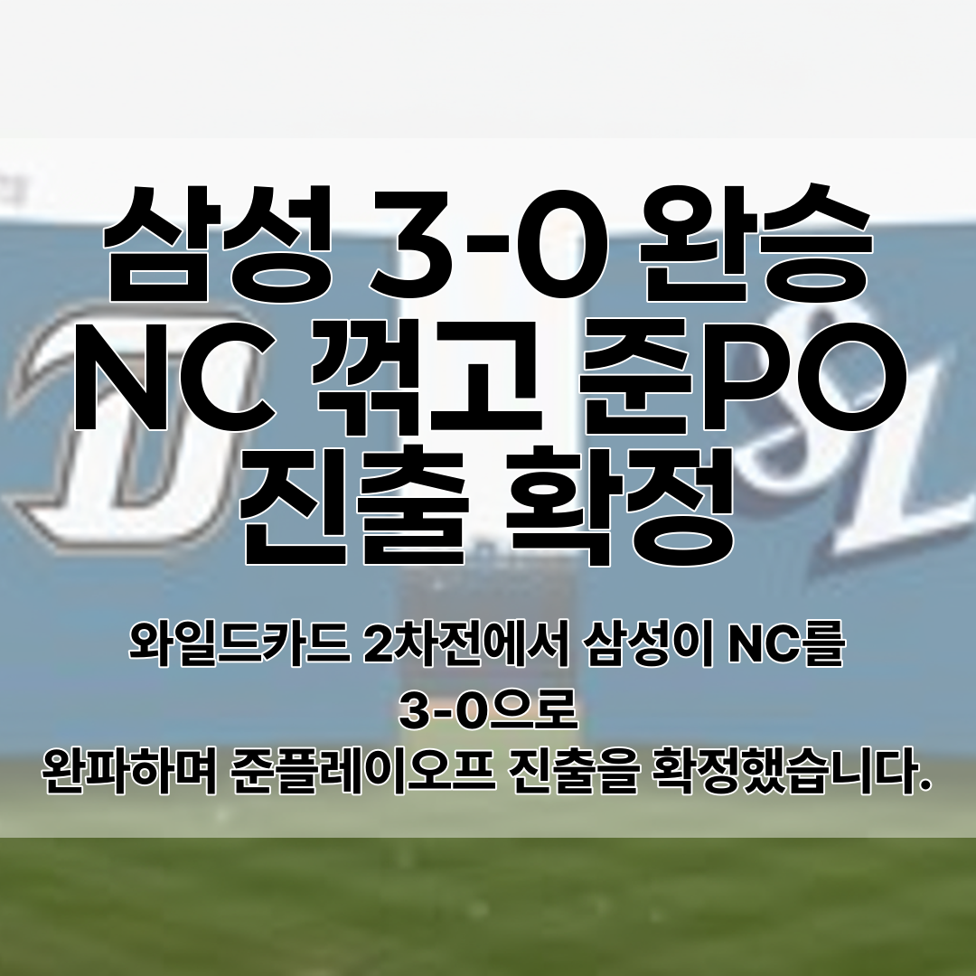 10월 7일 대구 삼성라이온즈파크에서 열린 와일드카드 2차전에서 삼성 라이온즈가 NC 다이노스를 3-0으로 완파하며 준플레이오프 진출을 확정했다.