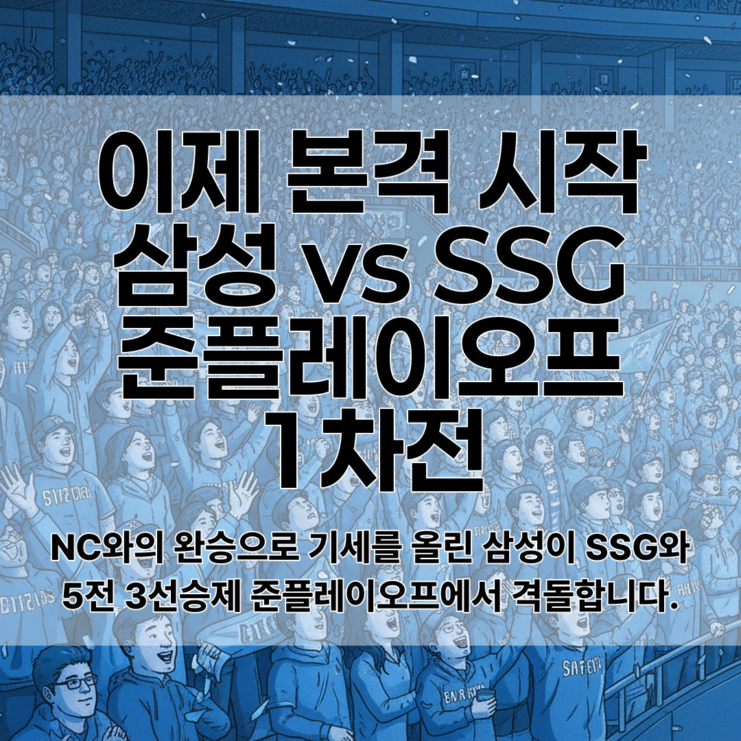5전 3선승제로 치러지는 준플레이오프에서 삼성의 상승세가 계속될지, 아니면 SSG가 정규시즌 상위팀의 저력을 보여줄지 야구팬들의 관심이 뜨겁습니다. 포스트시즌의 진짜 재미가 지금부터 시작돼요! 🔥