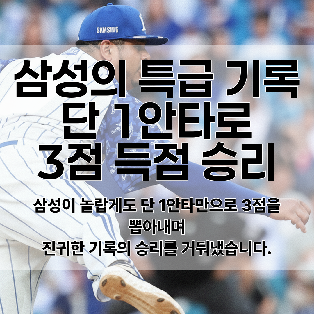 이번 경기의 가장 놀라운 포인트는 삼성의 득점 방식이었어요! 단 1안타로 3점을 만들어낸 진기록을 세웠거든요.