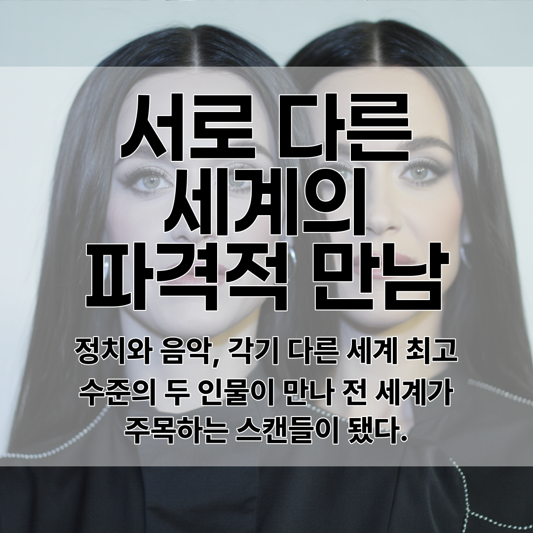 팬들과 네티즌들은 유력 정치인과 세계적인 팝스타의 만남에 놀란 반응을 보이고 있습니다. 특히 기존 열애설이 사실로 공식화된 결정적 사진이라는 평가가 나오고 있어요.