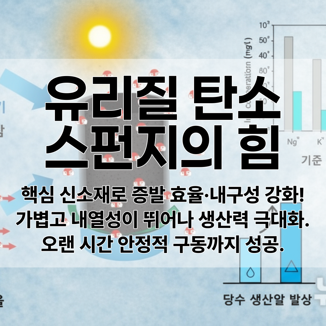 유리질 탄소 스펀지라는 신소재를 개발했다. 이 소재는 수세미처럼 구멍이 촘촘한 구조로 가볍고 물에 뜨며 고온에 강한 특성을 가지고 있다. 전기 전도성이 좋아 태양열과 전기열을 효율적으로 전달하며, 표면 온도를 98°C까지 올릴 수 있다.