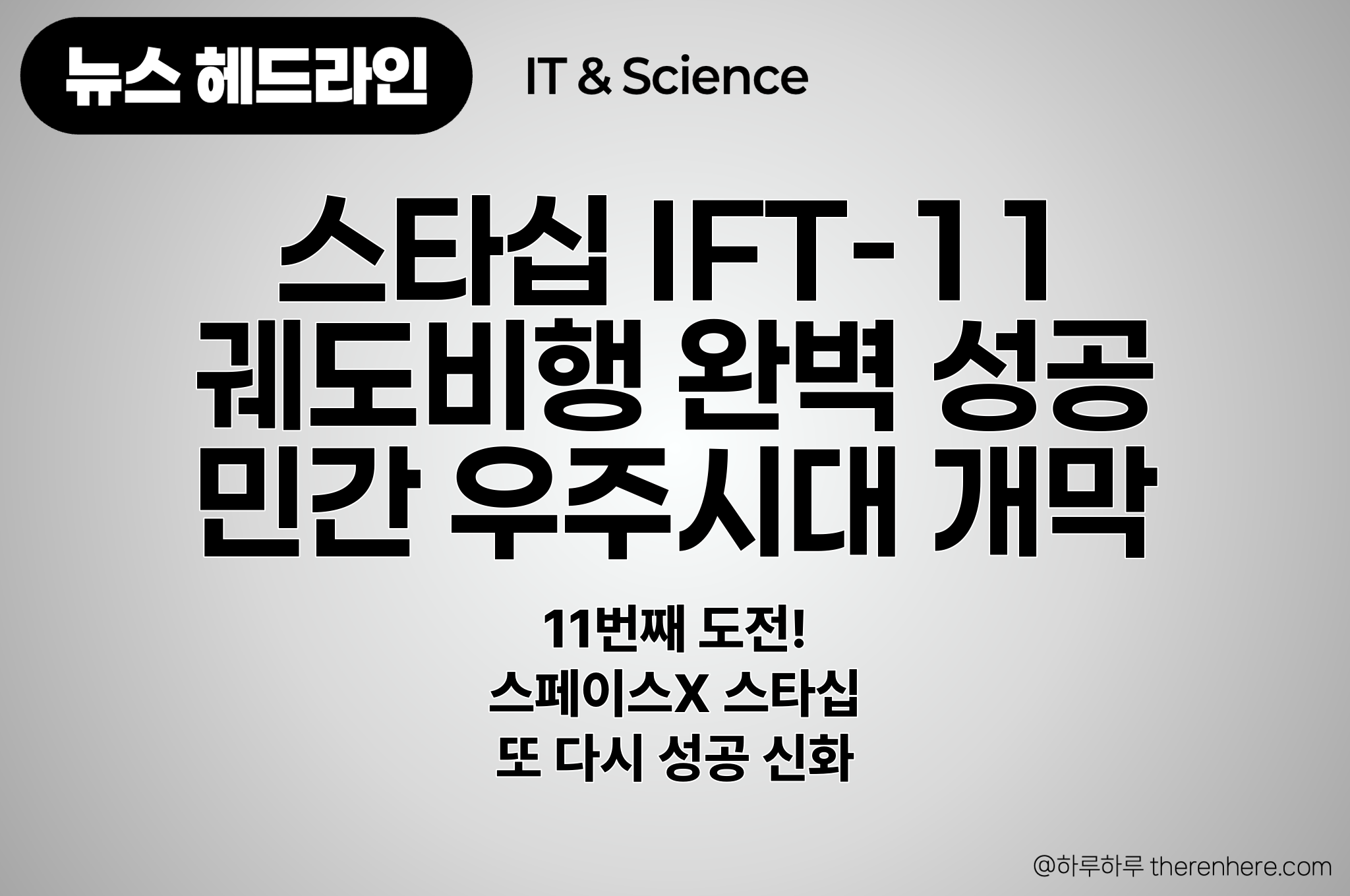 2025년 10월 13일 현지시간 텍사스 보카치카 스타베이스에서 스페이스X 스타십의 11번째 시험비행이 성공적으로 완료되었으며, 전 세계에 실시간 생중계되었다.