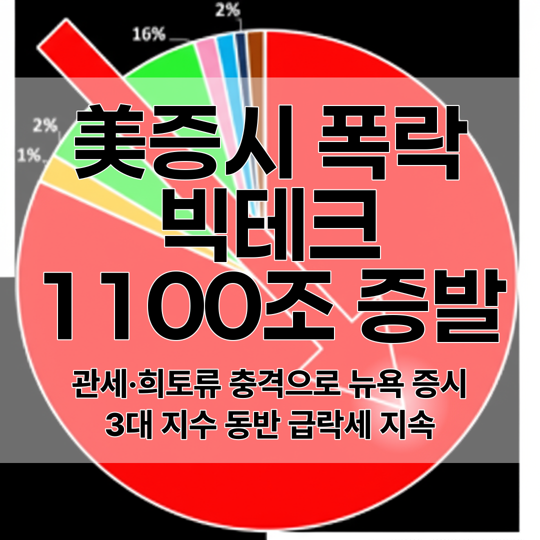 관세 및 희토류 충격으로 다우지수 878포인트(-1.9%), S&P500 -2.71%, 나스닥 -3.56% 급락했으며, 엔비디아, 테슬라 등 빅테크 기업들이 하루 새 1100조 원의 시총을 잃었다.