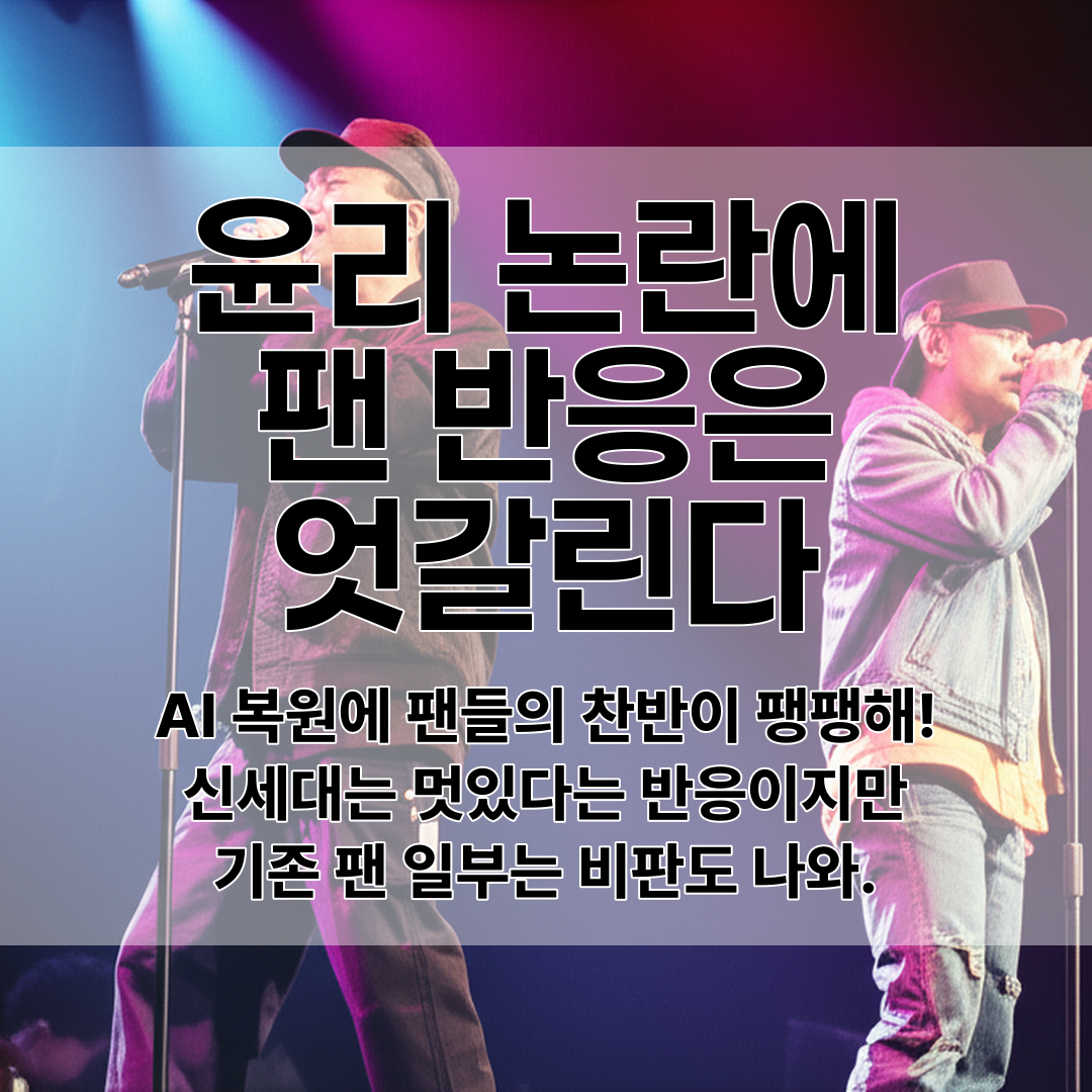 - AI 복원에 팬들의 찬반이 팽팽해!신세대는 멋있다는 반응이지만기존 팬 일부는 비판도 나와.