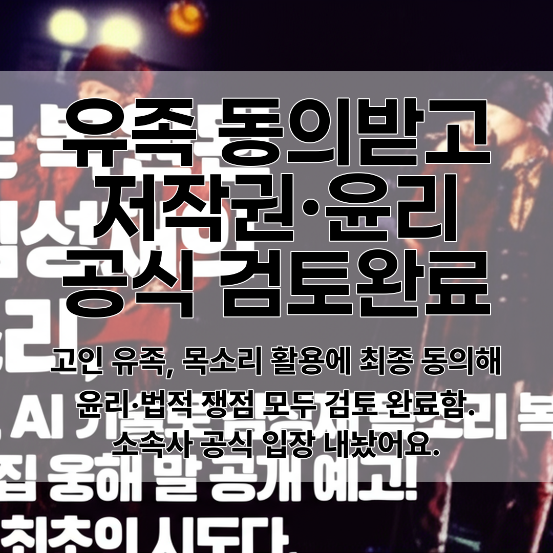 - 고인 유족, 목소리 활용에 최종 동의해윤리·법적 쟁점 모두 검토 완료함.소속사 공식 입장 내놨어요.