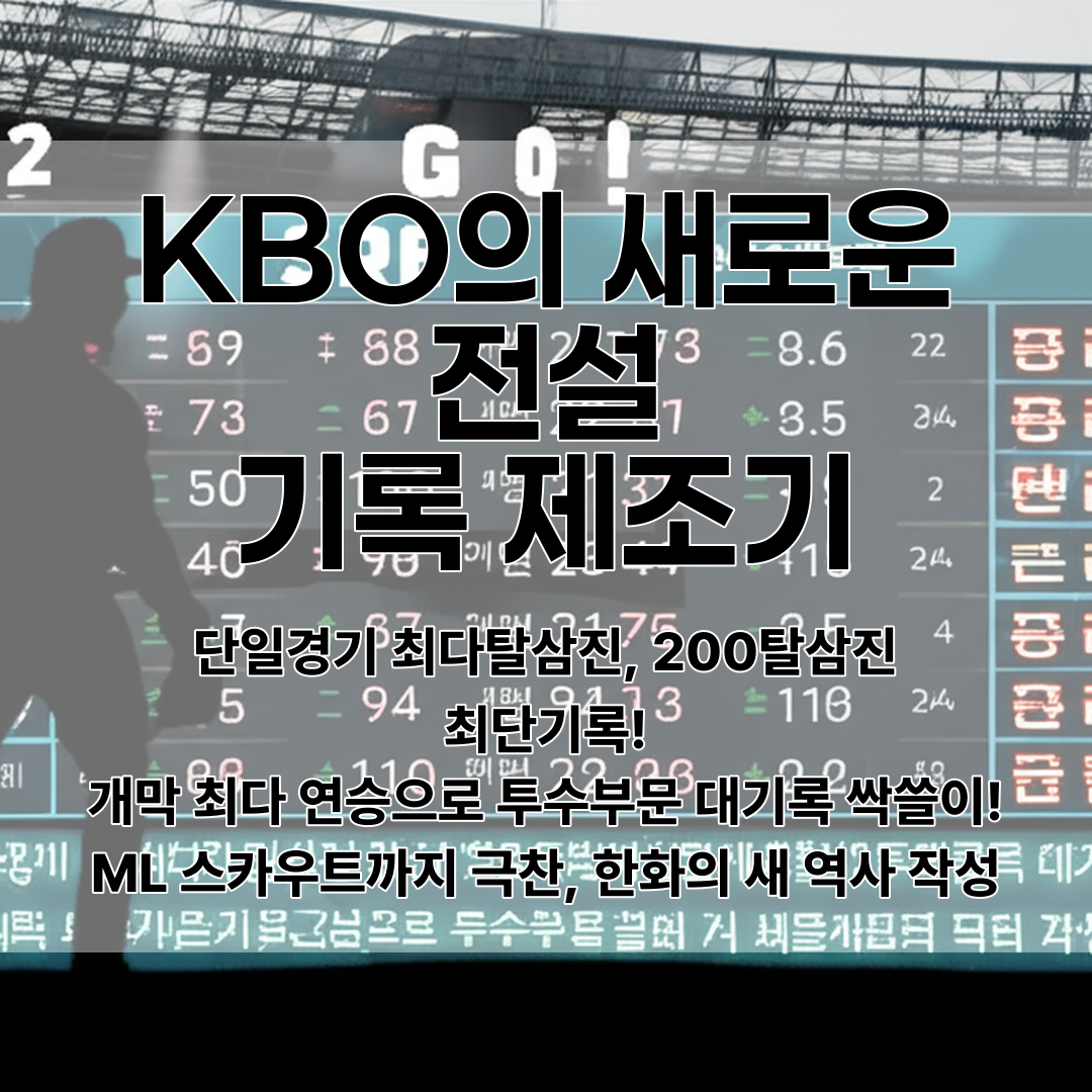 - 단일경기 최다탈삼진, 200탈삼진 최단기록!개막 최다 연승으로 투수부문 대기록 싹쓸이!ML 스카우트까지 극찬, 한화의 새 역사 작성