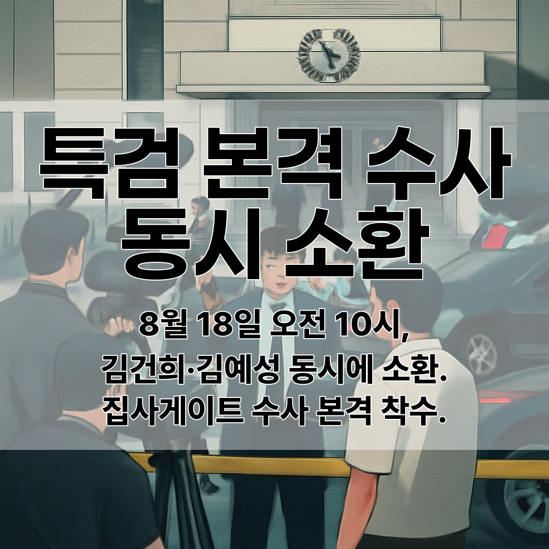 ⏺ 8월 18일 오전 10시, 김건희·김예성 동시에 소환. 집사게이트 수사 본격 착수.