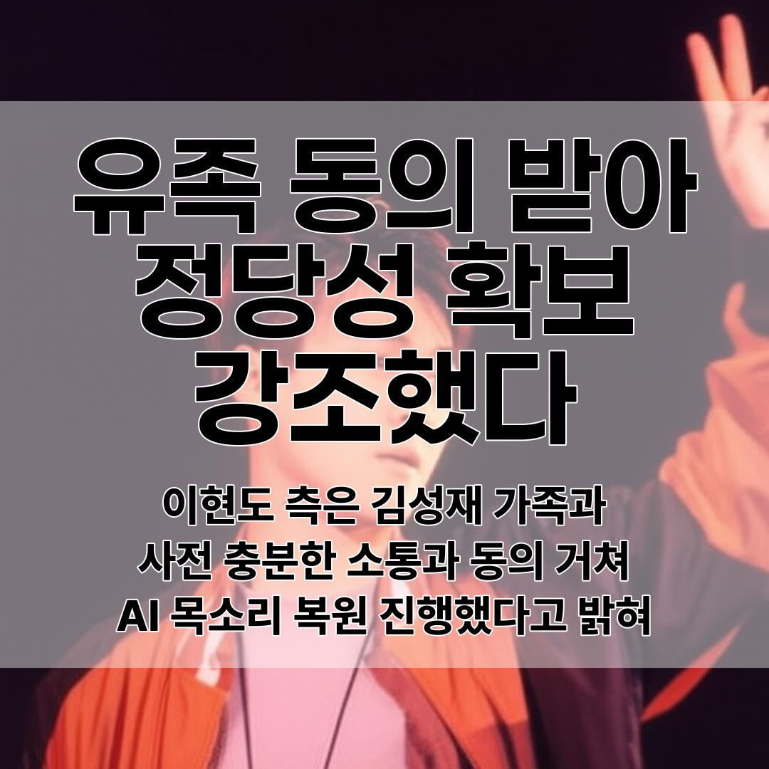 - 이현도 측은 김성재 가족과사전 충분한 소통과 동의 거쳐AI 목소리 복원 진행했다고 밝혀