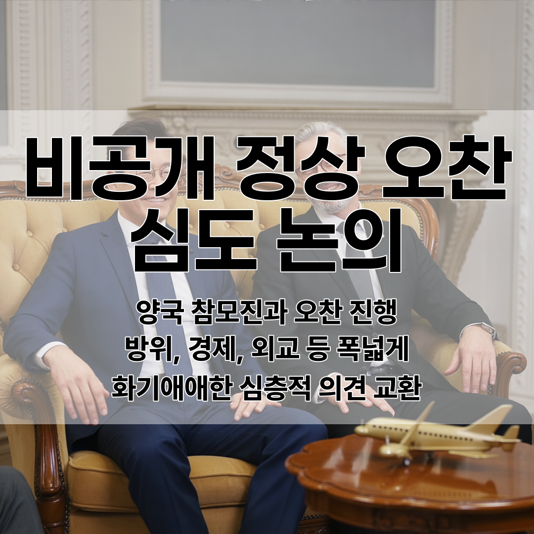 양국 정상과 참모진이 참여한 비공개 오찬에서 방위산업, 경제협력, 한반도 정세, 한미일 외교 등 폭넓은 현안이 논의되었으며, 예상보다 긴 시간 화기애애한 분위기에서 심층적 의견 교환이 이뤄졌다.