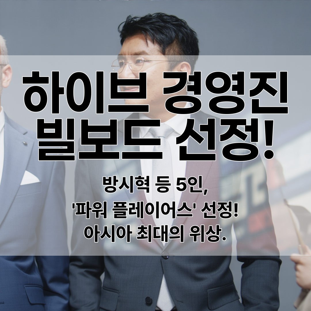 하이브의 경영진 5명이 전 세계 음악 산업에서 영향력을 인정받아 2025 빌보드 '글로벌 파워 플레이어스'에 선정됐어요.