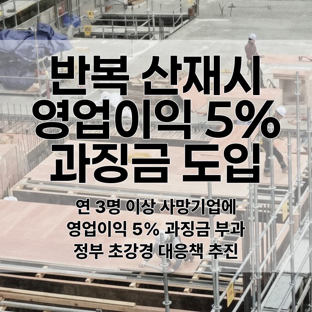정부가 드디어 강력한 카드를 꺼내들었습니다. 산업현장에서 연간 3명 이상의 사망사고가 발생한 기업에 대해 영업이익의 5%까지 과징금을 부과하는 초강력 대책을 발표했어요.