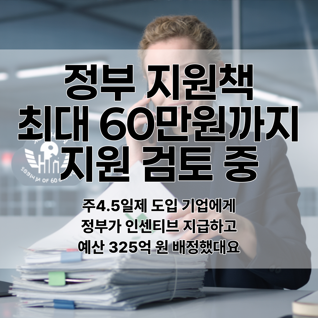 정부는 주4.5일제에 참여하는 기업에 근로자 1인당 6개월간 최대 60만원의 인센티브 지원을 검토 중이에요. 이미 2026년 시범사업 예산 325억 원을 편성했다고 하네요! 💰