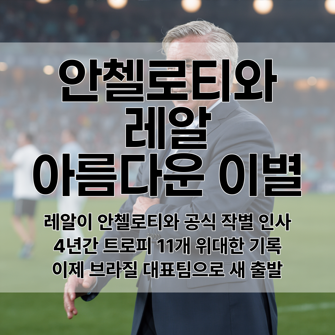 통산 4시즌 동안 무려 11개의 트로피를 들어올리며 전설적인 지도자로 자리매김한 안첼로티. 2025년 5월 25일 라리가 시즌 종료와 함께 공식적으로 레알과 작별 인사를 나누게 됐어요.