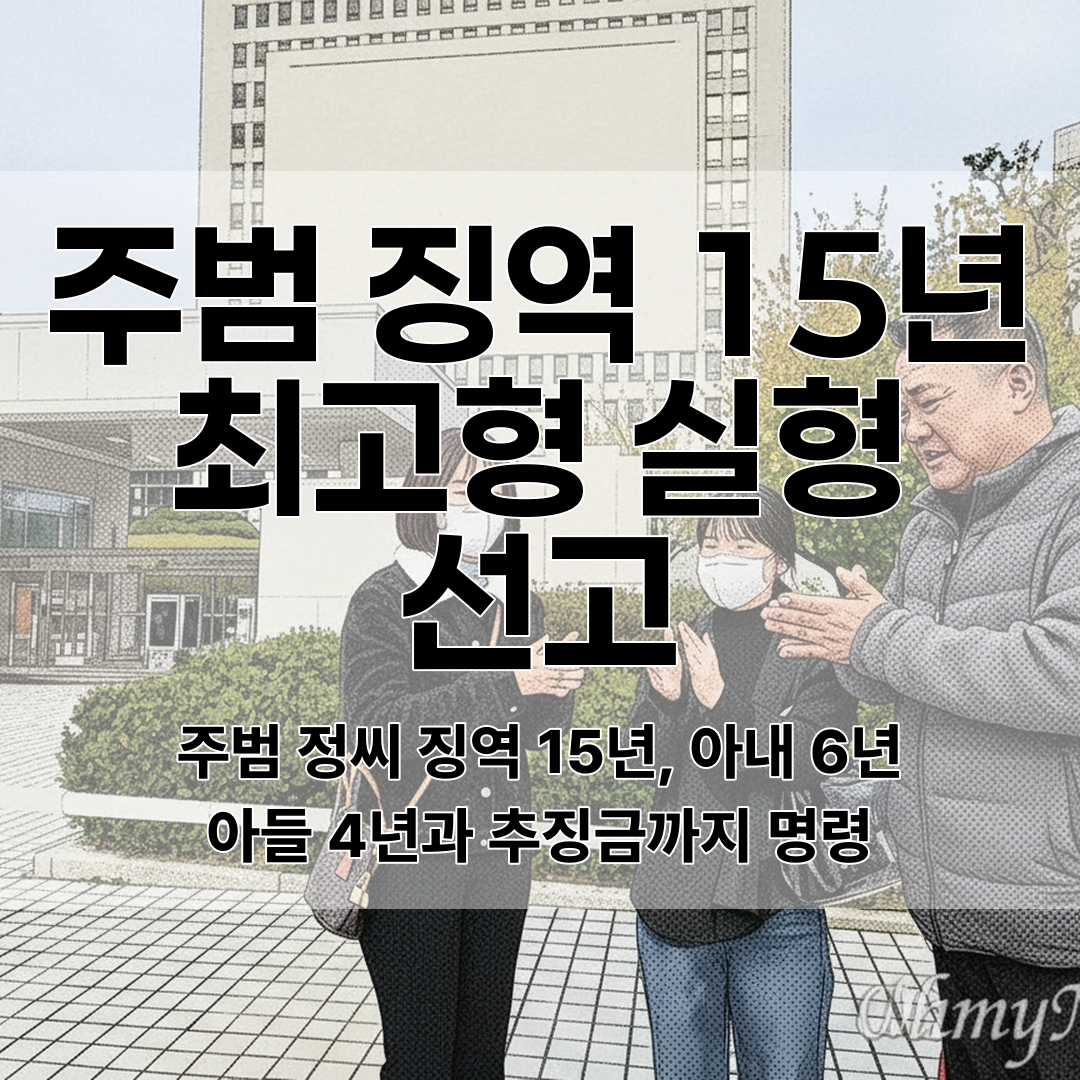 주범 정씨는 징역 15년, 부인 김씨는 징역 6년, 아들 정씨는 징역 4년의 실형을 선고받았으며, 1억 360만원의 추징금도 명령되었다.