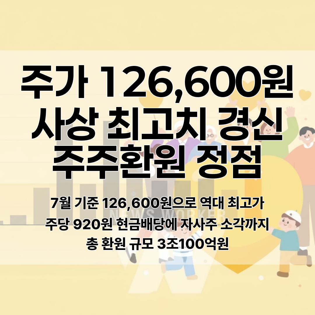 2025년 7월 기준 주가 126,600원으로 사상 최고치를 경신했으며, 주당 920원 현금배당과 8500억원 규모 자사주 매입·소각을 포함해 총 주주환원 규모 3조100억원을 발표했다.