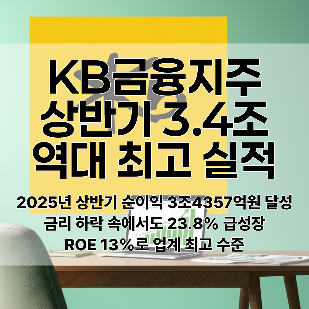 KB금융지주가 2025년 상반기 당기순이익 3조4357억원을 기록하며 역대 최고 실적을 달성했습니다. 이는 전년 동기 대비 무려 23.8% 증가한 수치예요.
